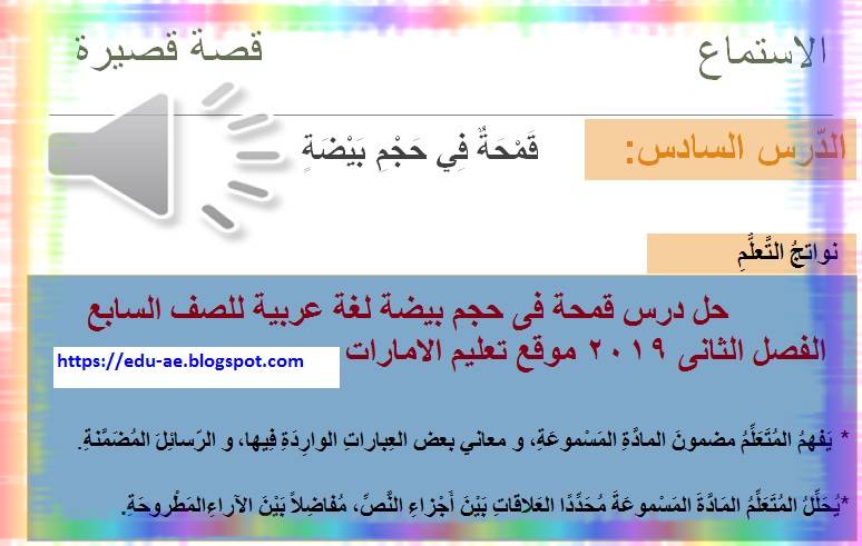 حل درس قمحة فى حجم بيضة مادة اللغة العربية للصف السابع الفصل الأول2020